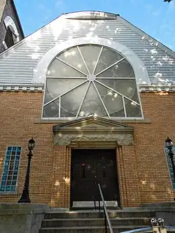 Andrews United Methodist Church is a historic Methodist church at 95 Richmond Street in Cypress Hills, Brooklyn, New York, United States. It is now Andrews Ghana Wesley United Methodist Church. It was built in 1893 and is a one-story, asymmetrical orange brick church in the Queen Anne style. It features a massive rose window on the front facade and a three-story, square bell tower. The interior is arranged on the Akron Plan. Attached to the church is a two-story Sunday school wing. Also on the property is the original church parsonage It is a two-story frame dwelling built in 1878–1879 in the Italianate style.[2]