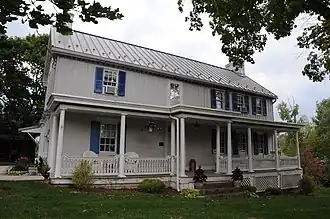 The Angle Farm, also known as Maplebrow, is a historic home located southeast of Mercersburg in Montgomery Township, Franklin County, Pennsylvania.[2][3] A three-part, two-story, five-bay log and timber frame dwelling, it is supported by a fieldstone foundation.