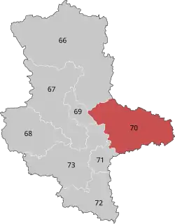 Anhalt – Dessau – Wittenberg is an electoral constituency (German: Wahlkreis) represented in the Bundestag. It elects one member via first-past-the-post voting. Under the current constituency numbering system, it is designated as constituency 70. It is located in eastern Saxony-Anhalt, comprising the city of Dessau-Roßlau, the district of Wittenberg, and part of the district of Anhalt-Bitterfeld.[1]