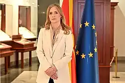 Angelovska-Bežoska assumed the office of Governor of the National Bank on 21 May 2018, when the Assembly of Macedonia, with 81 votes "for", no votes "against" and no abstentions, declared support for the proposal of the President of the country for her to hold this highly responsible position.[5][6] She became the first woman Governor of the National Bank of Macedonia.[7][8] Previously, Angelovska-Bežoska worked at the National Bank for twelve years, first as Chief Economist and eight years afterwards as Vice Governor in charge of monetary policy, research and statistics. She was also voted for the position of Vice Governor in 2010 and 2017 with full parliamentary support, without a single vote against. As Vice Governor, she also served as Alternate Governor of the Republic of Macedonia on the Board of Directors of the IMF. She is currently serving as Governor for the Republic of North Macedonia on this IMF Board.[9]