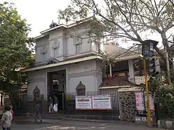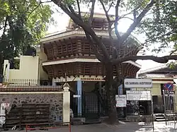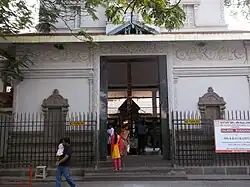 When Anna Nagar was developed as a model town in the late 1960s, the annual vilakku pooja during the mandala makaravilakku season was celebrated by Ayyappa devotees in the newly formed Shanti Colony. The residents' response to this annual celebration resulted in the formation of the Sri Ayyappa Seva Samajam (SASS) in 1976, with 14 members in its committee. In 1979, the Samajam started a charitable medical centre for the poor and needy.[1] The same year, a 7-ground land near the Visveswarayya Tower was allotted to the Samajam by the Tamil Nadu Housing Board for the construction of a temple, for which members contributed ₹ 38,000 towards initial payment.[1] Initially, a makeshift temple was built in a thatched shed along with a charitable medical centre in another shed.[2] Work on the construction of a permanent temple continued for the next five years in consultation with temple architect Kanipayyur Krishnan Namboodiri. The construction was guided by P. N. Subramaniam, the founder-president, P. Chandrasekhara Menon, the second president, and P. V. Nair, and financial support was provided by R. Ratnam, then chairman of Sundaram Industries, and P. Velayudham.[1] In May 1984, the typical Kerala-style temple was completed, conforming to the traditional shastraic stipulations. The kumbabishekam and consecration of the idol were performed on 13 May 1984 by temple Thantri Abli Krishna Vadhyan Namboodiri and K. M. Kesva Battatripad, former chief priest of the Sabarimala Temple.[2] The panchaloha Ayyappan idol was made by Chenganur T. Rajarathinam.[1] Idols of Ganesha, Subramanya, Goddess Durga, and Anjenaya were also consecrated. Later, a Navagraha (the nine planets) shrine was added in the temple. In 1989, a unique architectural structure known as the Natamandapam with an imposing gopuram was added. In 2005, gold covering of the 22-paras (segments) dwajasthambam and 27 thazhikakudams with about 6 kg of gold was completed. A special kumbabishekam of the gold-covered dwajasthambam was performed on 20 June 2005.[2]
