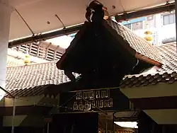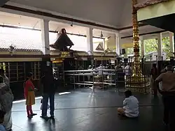 The temple is built on a 40-cent land near the Visveswarayya Tower.[2] The temple has shrines for Ganesha, Muruga, Durga, Anjaneya, Navagrahas and Nagaraja.[1] The main sanctum of Lord Ayyappa faces west with Lord Ganesha and Lord Subramanya to the left and Goddess Durga to the right, all facing east. The Navagraha shrine is located on the southeast corner of the temple and the Anjaneya shrine is located in the southwest corner, facing east.[2] The main door at the entrance is covered with brass plates. There is an auditorium, named after Sri Adisankara, covering about 3,600 sq ft,[2] which can accommodate about 1,000 persons,[1] for conducting spiritual and cultural programmes and discourses. The design of the auditorium involves the Koothambalam style found in Kerala temples.[2]