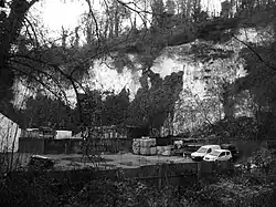 Originally much of the land occupied by the later foundry at the far end of the village was marsh land, known as Clatford Marsh. Robert Tasker noted the fact that the village had quarrying rights to chalk in the nearby hillside. By exploiting this right and quarrying an acre of chalk from the hillside it enabled the marshland to be filled with the quarried materials to act as foundations for the new Iron Foundry situated alongside the PillHill brook which would serve as a source of water power for the foundry. This chalk quarry is still very much in evidence (it is owned by the Parish Council) and can be seen from the road and a footpath that passes along the hillside behind the village leading to the Iron Age hillfort of Bury Hill.