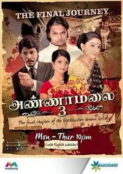 Annamalai 3 (Tamil: அண்ணாமலை 3) is an Indian Tamil-language soap opera that aired Monday through Thursday on MediaCorp Vasantham from 28 December 2015 to 31 March 2016 at 10:30PM SST for 52 episodes.