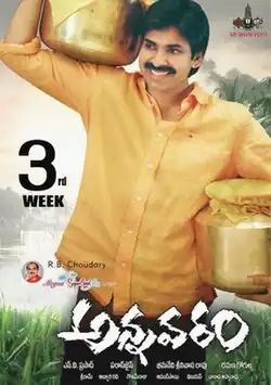 Annavaram is a 2006 Indian Telugu-language action drama film directed by Bhimaneni Srinivasa Rao and stars Pawan Kalyan, Asin and Sandhya in the lead roles.[1][2] Mega Super Good Films produced the film. The film is a remake of Tamil film Thirupaachi (2005). The film released on 29 December 2006. It was a moderate success at the box-office.[3] It also marked Asin's last Telugu film, to date.[4]