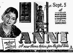 Anni (, transl. ⓘ Sister-in-law) is a 1951 Indian Tamil-language drama film directed by K. S. Prakash Rao. The film stars Master Sethu and G. Varalakshmi. It was released on 5 September 1951.[1]