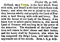 "Holland, is the land which flows with milk, and Brazil is the land which flows with honey; and when the one is joined to the other, they become wholly and properly the Land of Promise, a land flowing with milk and honey."[15]