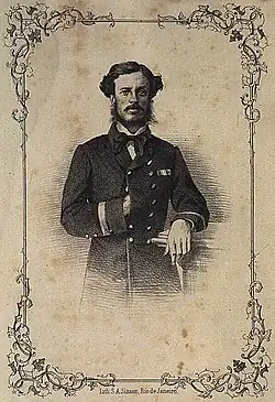 While commanding a naval division and the corvette Belmonte, Mariz e Barros escorted emperor Pedro II on his trip to Northeastern Brazil and was decorated with the habit of the Order of the Rose.[4][5] He was also awarded the Knight's Cross of the Legion of Honor for saving a French barge that was about to sink on the rocks of the Fortress of Laje.[6]