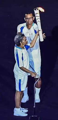 Antônio Delfino de Souza (born 11 August 1971) is a retired paralympic sprinter from Brazil. At the age of 17 de Souza had his right hand amputated after an accident at agricultural works. In 1992, he moved to Brasília, where he took up sprint running.[1] He competed in T46 sprint events at the 2000, 2004, 2008 and 2012 Paralympics and won two gold and one silver medal in 2000 and 2004.[2] He was selected as a final Paralympic torch bearer at the 2016 Summer Paralympics opening ceremony.
