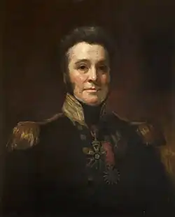 Maitland was a member of parliament for Haddington Burghs between 1813 and 1818, and Berwickshire between 1826 and 1832; he afterwards became a deputy lieutenant of Berwickshire.[9][1] These seats were family seats, and when in parliament Maitland voted along the family line with the opposition.[11] For his services Maitland was made a Knight Commander of the Order of the Bath on 6 April 1832.[1][9] He became Earl of Lauderdale on 22 August 1860 upon the death of his elder brother James; he was able to sit in the House of Lords as a British peer instead of as a Scottish representative peer because of the subsidiary title Baron Lauderdale that had been granted to his father in 1806.[10][9] Upon his death, Maitland's Scottish titles were inherited by his cousin Thomas Maitland while his English titles became extinct.[10]