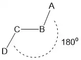 In organic chemistry, anti-periplanar, or antiperiplanar, describes the A−B−C−D bond angle in a molecule. In this conformer, the dihedral angle of the A−B bond and the C−D bond is greater than +150° or less than −150°[1] (Figures 1 and 2). Anti-periplanar is often used in textbooks to mean strictly anti-coplanar,[2] with an A−B C−D dihedral angle of 180° (Figure 3). In a Newman projection, the molecule will be in a staggered arrangement with the anti-periplanar functional groups pointing up and down, 180° away from each other (see Figure 4). Figure 5 shows 2-chloro-2,3-dimethylbutane in a sawhorse projection with chlorine and a hydrogen anti-periplanar to each other.