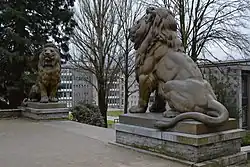 Bouré also sculpted the colossal lion in bronzed zinc at the Leopold Gate in Brussels; the pair at the entrance to the Palais de Justice in Charleroi, known as Totor et Tutur; and other lions throughout Brussels, including those in the garden of the Palais des Académies and four along the Rue Royale. Some of his lions were produced in tabletop versions.[24]