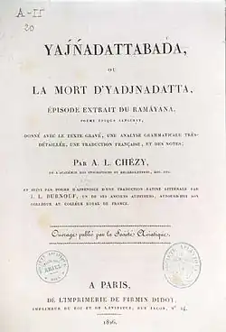 Antoine-Léonard de Chézy (15 January 1773 – 31 August 1832) was a French orientalist and one of the first European scholars of Sanskrit.
