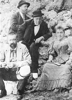 In 1899 Gaudí joined the Cercle Artístic de Sant Lluc (Saint Luke artistic circle), a Catholic artistic society founded in 1893 by the bishop Josep Torras i Bages and the brothers Josep and Joan Llimona. He also joined the Lliga Espiritual de la Mare de Déu de Montserrat (spiritual league of Our lady of Montserrat), another Catholic Catalan organisation.[26] The conservative and religious character of his political thought was closely linked to his defence of the cultural identity of the Catalan people.[27]