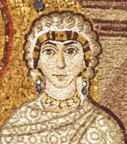 ![]() Portion of the Theodora mosaic in the Basilica of San Vitale c. 547. | |