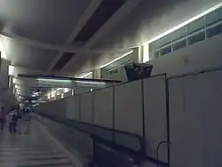 The original design is said to be compliant with security standards at the time of opening. However, after the September 11, 2001, attacks, the U.S. government began to require separation of uninspected arrival passengers. The airport initially used a system of chairs, moving sidewalks, retractable belts and security/police staffing to usher arriving passengers from the gate to the immigration hall without coming into physical contact with departing passengers. In recent years, semi-permanent movable walls separate much of the length of the terminal building into two halves, decreasing the need for human staffing and those lighter objects previously in use.[22]