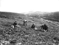 ![]() Picking blueberries by Anvil Creek. Mining activity can be seen along it in the distance (ca. 1901) | |