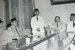 After the recognition of Indonesia by the Dutch government on 27 December 1949, the previous prime minister Djumhana Wiriaatmadja resigned as the prime minister. Djumhana was replaced by Anwar Tjokroaminoto, the son of the national hero Oemar Said Tjokroaminoto.[1] Initially, after the resignation, the task of forming the new cabinet and the position of the prime minister was given to Sewaka. Sewaka accepted this offer, but he also insisted that the programs of the cabinet would carry out efforts towards the dissolution of the State of Pasundan. Sewaka's demands were firmly rejected by Wiranatakusumah.[2] The task was therefore given to Anwar Tjokroaminoto. Anwar was given the mandate to form the cabinet by Wiranatakusumah on 7 January 1950.[3] He finished forming his cabinet on 9 January 1950,[4] and the cabinet was installed on 11 January 1950.[5]