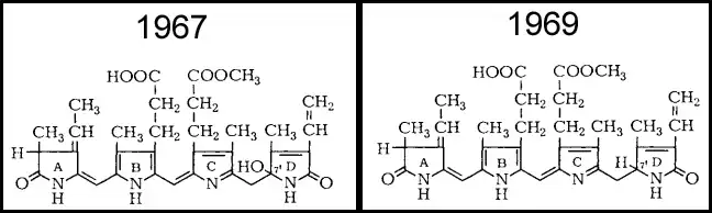 - ^ RÜDIGER, WOLFHART; CARRA, PÁDRAIG Ó; HEOCHA, COLM Ó (September 1967). "Structure of Phycoerythrobilin and Phycocyanobilin". Nature. 215 (5109): 1477–1478. Bibcode:1967Natur.215.1477R. doi:10.1038/2151477a0. ISSN 0028-0836. PMID 6052748. S2CID 4221727.