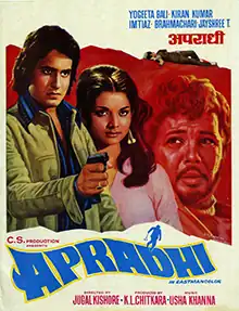Apradhi (transl. Criminal) is a 1974 Indian Hindi-language action drama film directed by Jugal Kishore, with the script written by R.K. Banerjee and T.N. Sharma. The film stars Yogeeta Bali, Kiran Kumar and Dev Kumar.[1][2] The soundtrack was composed by Usha Khanna and features playback singers Suman Kalyanpur and Mukesh. It was released on the EMI Records label.