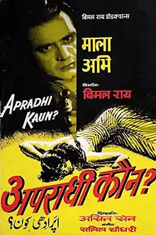 Apradhi Kaun? (transl. Who is the perpetrator?) is a 1957 Indian Hindi-language mystery thriller film directed by Asit Sen and produced by Bimal Roy. The film stars Abhi Bhattacharya, Mala Sinha and Gajanan Jagirdar.[1][2] It is based on the Bengali novel Kaalo Chhaya by Premendra Mitra.[3]
