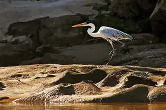 There is a wide range of mammals in the park including marsh deer, other species of deer, peccary, capybara, giant anteater, maned wolf, jaguar, giant otter and armadillo. The reptiles present include the anaconda, spectacled caiman, black caiman and South American river turtle, and the rivers are home to many freshwater fish as well as Amazon river dolphins and Tucuxi dolphins. There are plenty of birds too, including the common toucan, anhinga, greater rhea, quail, partridge, osprey, Orinoco goose, heron. egret, Spix's macaw, hoatzin and musician wren.[3]