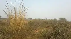 In 2010, a group of concerned and passionate citizens called 'iamgurgaon',[8] consisting of Latika Thukral,[9] Swanzal Kak Kapoor, Atal Kapoor, Gayatri Singh and the Late Atal Kapoor took up the initiative of ecological restoration of the Aravali Biodiversity Park, Gurgaon. They hired ecological restoration practitioner Vijay Dhasmana[10] to restore the damaged landscape in 2011. Thereafter the vision was revised to bring back the original Aravali forest vegetation of the region. Seedlings of about 200 native plant species were raised from seeds collected from remnant natural forests and vegetated areas in Mangar, Nahargarh, and Kumbhalgarh in the Aravalli Range. Invasive alien species such as Prosopis juliflora were carefully removed and native plants of the Aravalli Range were planted. These included native species such as Boswellia serrata (local name: salai), Sterculia urens (kullu), Anogeissus pendula (dhau), Holarhenna pubescens (indrajao), Mitragyna parvifolia (kaim), Wrightia tinctoria (khirni), Commiphora wightii (guggul), Helicteris isora (marodphali), Albizia odorotissima (kala basa), Mallotus philippensis (sinduri) and many others. A large part of seedlings planted were watered through drip irrigation. The Park also maintains a variety of habitats including grasslands and a seasonal pond near an old quarry site.[5]