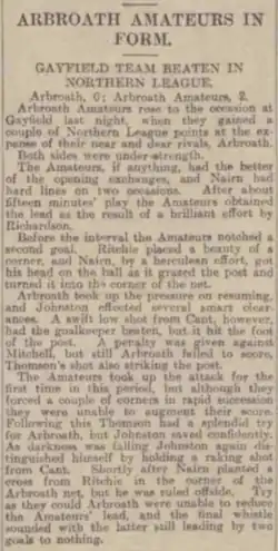 - ^ "Arbroath Amateurs entertain Brechin City". Dundee Evening Telegraph: 3. 6 December 1912.