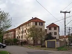 Soon Eclecticism would predominate. An imposing example is the Public Market, which replaced the earlier, smaller market. It was planned by engineer Frederico Heydtmann in 1861. The construction had its cornerstone laid in 1864, being inaugurated in 1869. The complex underwent substantial modification in the 1910s with the addition of a second floor, while preserving the style.[7] Of similar stylistic characterization are the Museu do Comando Militar do Sul ("Museum of the Southern Military Command"), a large building inaugurated in 1867, built by master-operator Manoel Alves de Oliveira as an annex to the War Arsenal;[12] the building of the 8th Military Service Circuit, erected on an earlier construction that housed the Royal Stores; and the Provisional Palace, whose design, by engineer Francisco Nunes de Miranda, was later modified by engineer Antônio Mascarenhas Telles de Freitas. Work on the Provisional Palace began in 1857 and the project included structural solutions that were advanced for the time, such as the roof slab with a system of double "T" steel profiles combined with compression bricks, forming small arches. Another imposing eclectic building was the House of Correction, later demolished, of neoclassical distribution and detailing that referred to military architecture.[13] One of the grand examples of Porto Alegre's eclecticism is the historical complex of the São Pedro Psychiatric Hospital, which according to Institute of Historical and Artistic Heritage of the State of Rio Grande do Sul (IPHAE) technicians is:[14]