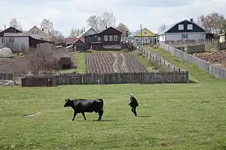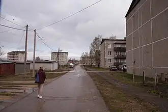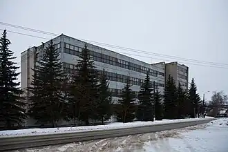 The 1960s to 1980s were years of active construction in Ardatov. Dozens of apartment buildings were constructed for factory employees, primarily located in the southern part of the town.[92][93] In the late 1960s to early 1970s, new buildings for the district hospital with 250 beds and a clinic with 600 visits per shift were erected.[94] In 1968, the cinema Zvezda (Star) was opened at the corner of 30 Years of VLKSM and Lenin streets (previously it was located in the Znamensky Cathedral, which was closed in 1925).[95] In 1975, a new building for secondary school No. 2 was constructed,[96] in 1973 a bus station was built,[97] in 1978 a cultural center was established,[97] and in 1983 the building of the State Bank (now the courthouse) was completed.[98] However, much like before the October Revolution, the town resembled a rural locality more than an urban one. According to counts conducted in the early 1960s by journalist Konstantin Ivanovich Bukovsky (father of the human rights activist and writer Vladimir Bukovsky), there were 1,100 houses in the town, of which only 96 were apartment buildings. Out of 969 households, 792 kept livestock: cows, pigs, sheep, goats, as well as chickens and ducks.[99]