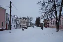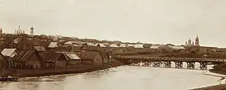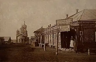 A regular plan for rebuilding the town was prepared soon after, however few was done.[34] Most buildings were made of wood, and it often caused severe fires, such as in 1826 (after which architect Prokofy Semyonovich Fomchenkov prepared a new regular plan for the town) and especially in 1837, in which almost the entire town burned down, only for seven stone buildings resisted.[35][36]