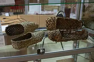 According to archaeological data, 5—6 thousand years ago the Ardatov region was inhabited by Neolithic tribes belonging to the Lyalovo culture. In the Ardatov Municipal District have been discovered a total of 61 archaeological sites of the Neolithic era — most of them are located in the course of the Tyosha River. The biggest number of such sites a located around the present-day villages of Lichadeyevo (9) and Sakony (7) and near the settlement of Krasnaya Rechka (9).[12] These primitive inhabitants were hunters and gatherers, well favoured by the local natural conditions — a large number of forests with animals, birds and various natural gifts and a large number of rivers with fish.[13] In 1929, scientific excavations were carried out near Sakony, revealing stone arrowheads, scrapers, cleavers, chisels and a large number of animal and fish bones.[14] In the 3rd—2nd millennia B. C. the ancient inhabitants of the Ardatov region learnt to produce metals — first bronze and then iron. This allowed them to pass gradually to sedentary lifestyle, engaging in cattle breeding and farming.[13]