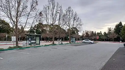 An expanded lot and bus shelter opened in August 2009 at a cost of $8.3 million and was frequently filled within months of opening.[1] A railway platform is proposed to be constructed along the bordering Union Pacific Railroad Coast Line to serve the rerouted Capitol Corridor in 2026.[2] Such a station was previously proposed in 1990, when the service was being planned.[3]