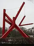 This 10-ton[2] sculpture is made of nine[4] red-orange[5] steel I-beams, welded together, with one section suspended as a giant mobile with wire, shaped like a "V".[4][6]