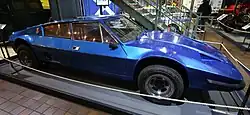 A production version of the car, which made its debut in 1983, had a non-turbocharged version of the Douvrin Euro V6 as used by Renault, Peugeot and others, together with a Renault 30 transaxle. A turbocharged V8 of 3.5 - 4.2 litres, together with the ZF transmission, was an option, but none were built. Other engine options were the Lancia Beta engine and transmission, and a Buick V6 which had started out as a stillborn Indycar engine. A top speed of 160 mph (ca. 260 km/h) with the turbo V8 was claimed but never ratified.[9] The quoted price at launch was £25-30,000, which was comparable to the contemporary Ferrari 308 GTB. Production capacity was stated to be twelve cars a year, but none were sold. The silver version used for the launch and publicity material belonged to the company accountant and was virtually never driven.