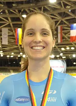 Ariane Bonhomme (born 2 April 1995 in Gatineau, Quebec) is a Canadian track cyclist, representing Canada at international competitions. She won the gold medal at the 2016 Pan American Track Cycling Championships in the team pursuit.[1]