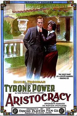 Aristocracy is a lost[1] 1914 American drama silent film directed by Thomas N. Heffron and starring Tyrone Power Sr., Marguerite Skirvin, Edna Mayo, Arthur Hoops, Ida Waterman and William Roselle. The film is based upon the play of the same name by Bronson Howard. It was released on November 26, 1914, by Paramount Pictures.[2][3]
