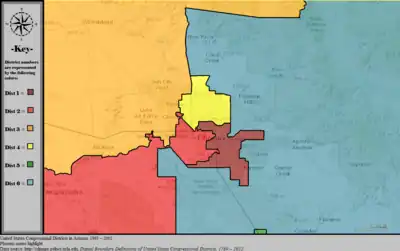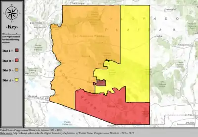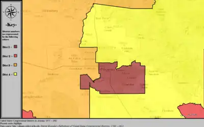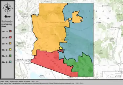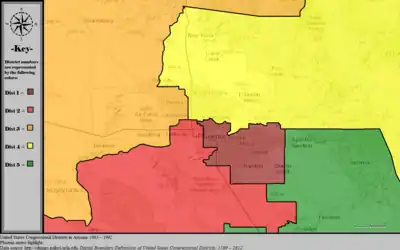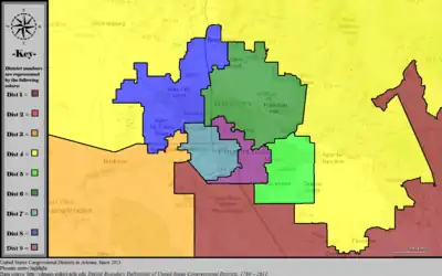 Table of United States congressional district boundary maps in the State of Arizona, presented chronologically.[10] All redistricting events that took place in Arizona between 1973 and 2013 are shown.