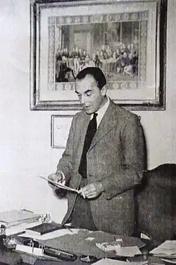 At the Council of Europe, he worked with the first Secretary General of the Council of Europe from August 1949 to his early passing in July 1953, Jacques Camille Paris, as well as with Léon Marchal, second Secretary General of the Council, with Paul M. G. Lévy from Belgium, first Director of Information and Press at the Council of Europe, Guy Mollet, then the President of the Consultative Assembly of the Council of Europe, and Marius Moutet, dean of the members of the Assembly.[5]