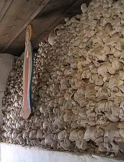 Arresting was first mentioned in 1086 as a settlement named Argistingin. its history dates back to the 6th and 7th centuries. The St. Wolfgang church was built in the second half of the 13th century. Around 1600, the church was extended to the south, and the gabled roof of the east tower, with its rounded merlons, was added. The altar in the church, dating from the 1730s, is in rococo style. The 16th century 'Karnerkapelle' is integrated into the graveyard's wall. It serves as an ossuary for human remains, including skulls, foot bones, and arm bones.[2]
