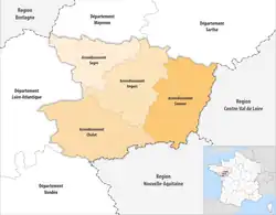 - Arrondissement of Saumur, (subprefecture: Saumur) with 52 communes. The population of the arrondissement was 133,080 in 2021.