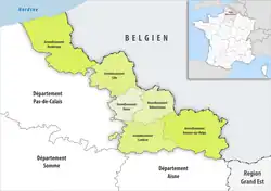 - Arrondissement of Cambrai, (subprefecture: Cambrai) with 116 communes. Its population was 158,753 in 2021.
