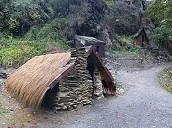 The village was one of at least ten Chinese settlements established in Otago for the purpose of gold mining in the 1800s. In 1865, the first Otago gold rush was over, and many European miners flocked to the newer goldfields of the West Coast in hopes of making a living there instead. Worries about Otago's economy post gold rush were expressed by the Provincial Council, who then invited Chinese miners from Victorian mines to continue mining the area.[2] 1866 census data show a Chinese population of less than 200 in Otago, but this number grew by thousands in the following decades.[3] By 1888, there were around 60 Chinese people living in the Arrowtown settlement. The settlement became the main hub for Chinese mining ventures in the Arrow River, Cardrona, and Macetown. Huts were built into the area's schist rock cliffs for protection and shelter. In 1885, the Arrowtown Chinese settlement had ten huts, at least two stores, and a town hall.