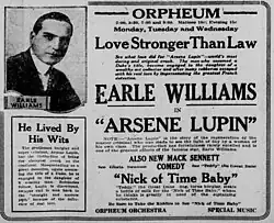 Arsene Lupin is a lost[1] 1917 American mystery film directed by Paul Scardon and starring Earle Williams, Brinsley Shaw and Henry Leone. The film is based on the character of the French gentleman thief Arsene Lupin.[2][3]