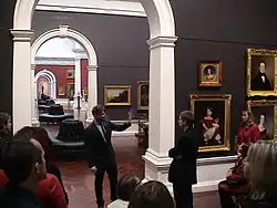 Nick Mitzevich was appointed as director in July 2010, when he was hardly known in SA.[15] He had grand ambitions and made a big impression in the eight years he ran AGSA. During this time, he acquired and commissioned works that would make an impression on the public, such as projecting an AES+F video work onto the gallery's façade during the Adelaide Fringe in 2012, and buying an entire exhibition of 16 paintings by Ben Quilty on the 130th anniversary of AGSA. He also hung We Are All Flesh, an epoxy resin sculpture of two headless horses by Belgian artist Berlinde De Bruyckere, from the ceiling of the gallery, which attracted much press coverage. His overall approach was to display contemporary works in close proximity to classics. Although he had a few detractors, the general opinion was that he had done a fine job at AGSA.[14][15][16][17] His achievements included curating the highly successful 2014 Adelaide Biennial,[15][17] the purchase of Camille Pissarro's Prairie à Eragny, with its A$4.5 million price raised from donations only. He also oversaw a major internal refurbishment of the gallery, introduced the Tarnanthi festival, hosted large-scale exhibitions, and greatly increased the collection of both contemporary Australian and international art. Annual visitor numbers increased from 480,000 in 2010 to 800,000 by the time of his departure. He was the first gallery director in Australia to implement a provenance project, which investigates old objects which were acquired without historical checks.[17]