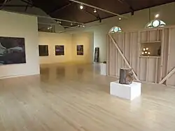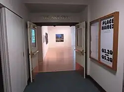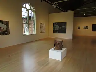 The Art Gym was founded in 1980 by Marylhurst University art faculty members Kay Slusarenko, Paul Sutinen, and Terri Hopkins, who together raised $1500 from a banquet and cookie sale, to open the 2,700 square foot gallery. Hopkins, in particular, lead the charge to curate the exhibits, and to raise the necessary funds for them. The university funds the space and basic infrastructure.[2] Since then, the gallery has occupied what was previously the campus gymnasium and theater on the third floor of the university's B.P. John Administrative Building. The Art Gym is dedicated to producing exhibitions and publications featuring artists of the Pacific Northwest.[3]