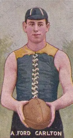 A defender, Ford make his league debut in 1903 but after just one season, left Carlton for Western Australia. The Essendon Town recruit played initially at West Perth, where he was a member of their 1905 West Australian Football League premiership team, before spending some time at Boulder City in the Goldfields Football Association.
