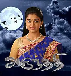 Arundathi is a 2016-2017 Tamil-language mystery soap opera that aired on Raj TV from 10 October 2016 to 6 January 2017 at 8:00PM IST for 75 episodes.[1][2] The show starred Reshmi, Senthinathan, Adhithiya, Udhay, Sekar, S. Priya, Shri and among others.[3]