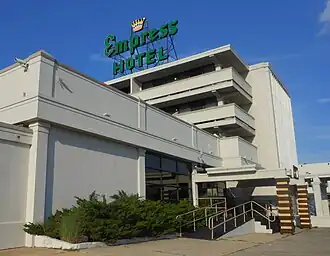 Bradley was active in the development of much of the city's infrastructure, and despite his preference for gas light, he allowed the Atlantic Coast Electric Company (precursor to today's Jersey Central Power & Light) to offer electric service.[35] Along the waterfront, Bradley installed the Asbury Park Boardwalk, an orchestra pavilion, public changing rooms, and a pier at the south end of that boardwalk. Such success attracted other businessmen. In 1888, Ernest Schnitzler built the Palace Merry-Go-Round on the southwest corner of Lake Avenue and Kingsley Street, the cornerstone of what would become the Palace Amusements complex; other attractions followed.[36] During these early decades in Asbury Park, a number of grand hotels were built, including the Plaza Hotel.[37]