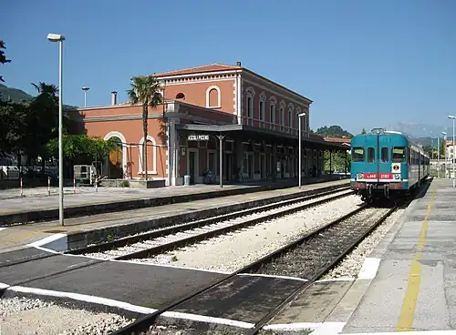 Ascoli Piceno railway station (Italian: Stazione di Ascoli Piceno) serves the town and comune of Ascoli Piceno, in the region of Marche, central Italy. Opened in 1886, it is the southwestern terminus of the San Benedetto del Tronto–Ascoli Piceno railway, a branch of the Adriatic railway.